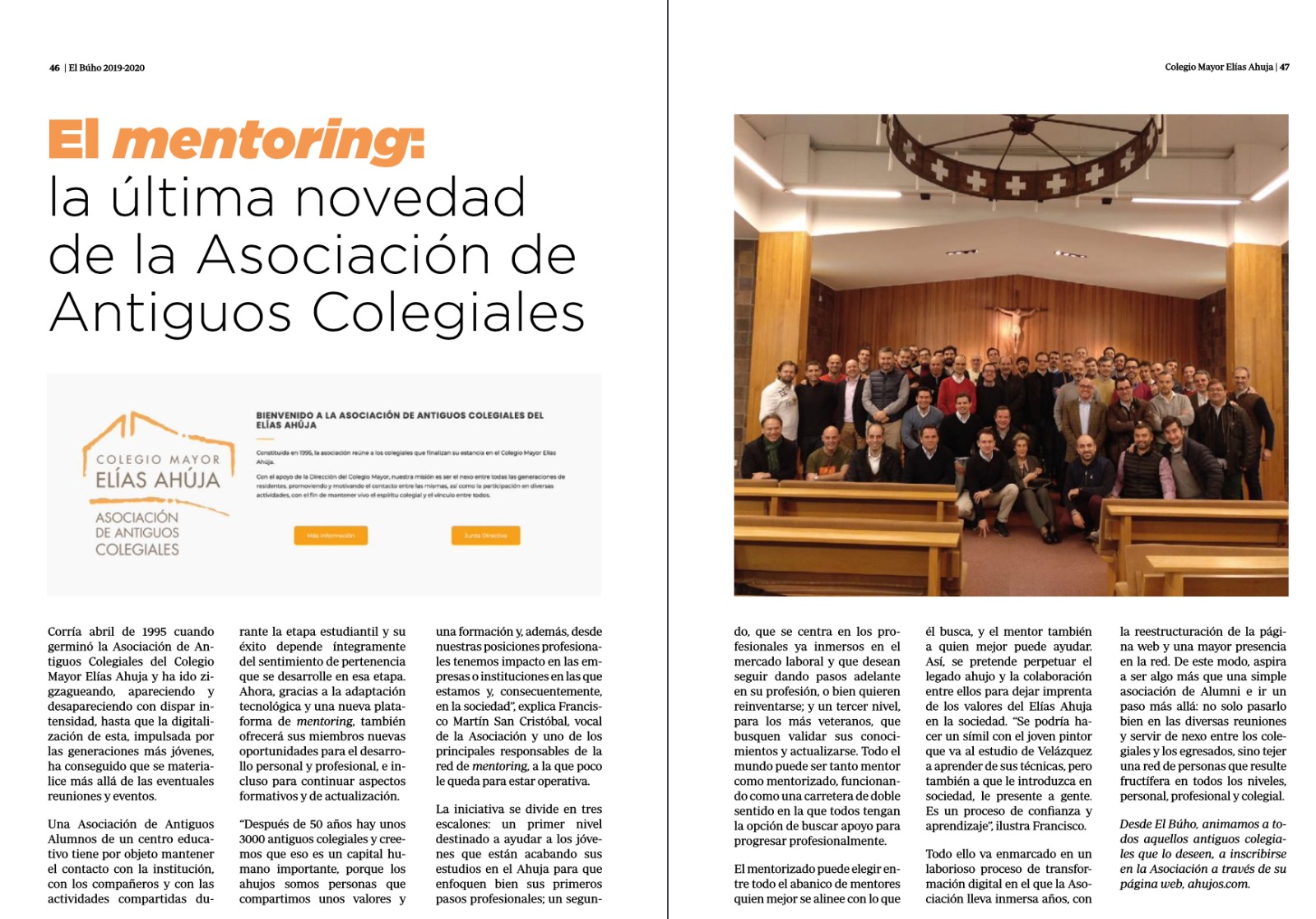 La revista del Colegio Mayor Elías Ahúja lleva por nombre «El Búho». Es editada por los actuales colegiales y, en esta ocasión, les ha interesado mucho el proyecto de la Asociación de Antiguos Colegiales sobre «mentoring».